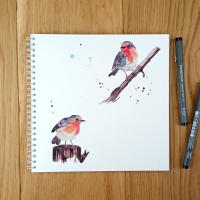 carnet aquarelle enfance rouge-gorge cadeau dessin croquis oiseaux